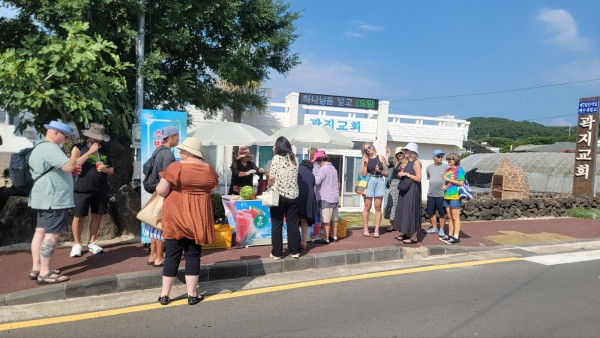 8월 2일 곽지교회(담임목사 최성구)가 무더운 불볕더위 속에서도 곽지해수욕장을 찾은 200여 관광객들에게 수박 주스를 선물했다.