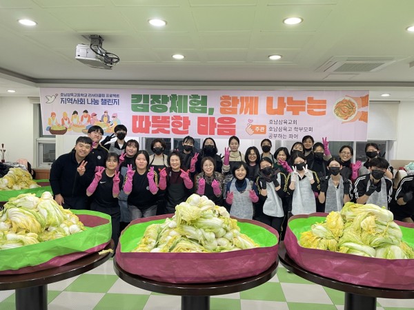 12월 18일 호남삼육고등학교(교장 고영덕)에서 지역 사회 나눔 챌린지 일환으로 ‘김장 체험’ 프로그램을 개최했다. 학교 환경 프로젝트 동아리 ‘공부하는 파머’에서 직접 재배한 작물을 활용해 학부모회와 호남삼육교회 교우들이 김장김치를 담갔고 완성된 김치 50통을 관내 두암종합사회복지관에 전달했다.