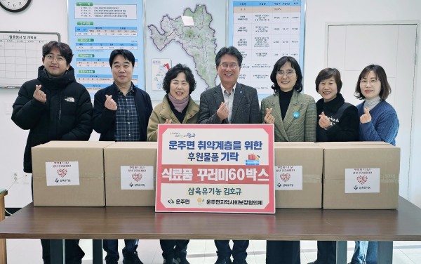 삼육유기농이 운주면 지역사회보장협의체(공동위원장 이선재, 홍성희)와 함께 김장김치 및 식품꾸러미 나눔 행사를 개최했다. 협의체 위원들은 이틀 동안 김장 작업을 진행, 김장김치 250포기와 삼육유기농 식품꾸러미 60세트를 관내 취약 계층 60가구에 전달했다. 홍성희 운주면장은 “추운 날씨에도 정성을 다해 김장 나눔에 참여해주신 협의체 위원님들께 감사드리며 꾸준한 나눔을 실천해 주시는 삼육유기농에도 깊이 감사드린다.”고 전했다.