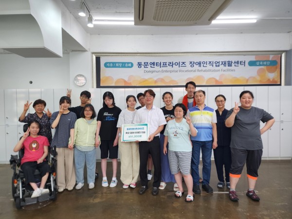 7월 31일 동문엔터프라이즈가 집중 호우 피해 이재민을 돕고자 근로 장애인과 직원들이 자발적으로 모금한 금액을 아드라코리아에 전달했다. 동문엔터프라이즈는 발달장애인의 자립과 사회 참여를 돕는 복지 시설로 근로자들은 오곡강정 등 다양한 제품을 생산하며 경제 활동에 참여하고 있다. 박은옥 원장은 “적은 소득이지만 장애인들이 나눔의 의미를 배우고 이웃에게 힘이 되고자 하는 마음으로 모금에 참여했다.”고 전했다.