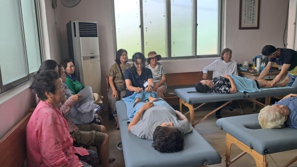 횡천교회 이성찬 목사 부부를 포함한 봉사자 7명이 발마사지를 지원했고
