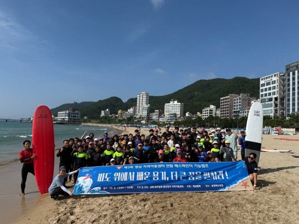 송정서핑학교와 연계한 서핑 수업으로 도전과 즐거움을 경험하고 신앙과 우정을 나누며 뜻깊은 시간을 보냈다.